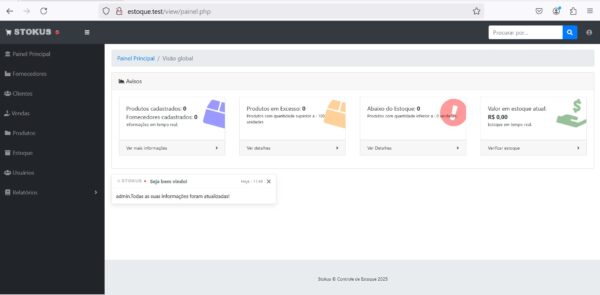 Funcionalidade para gerenciar dados de clientes, produtos, fornecedores, usuários, controle de estoque, entrada e saída de produtos, aviso de produtos em estoque baixo, aviso de produtos acima do estoque, relatório de vendas, relatório de clientes, relatório de fornecedores, relatório de produtos, controle de vendas, editar, alterar e deletar produtos, vendas, clientes e fornecedores.