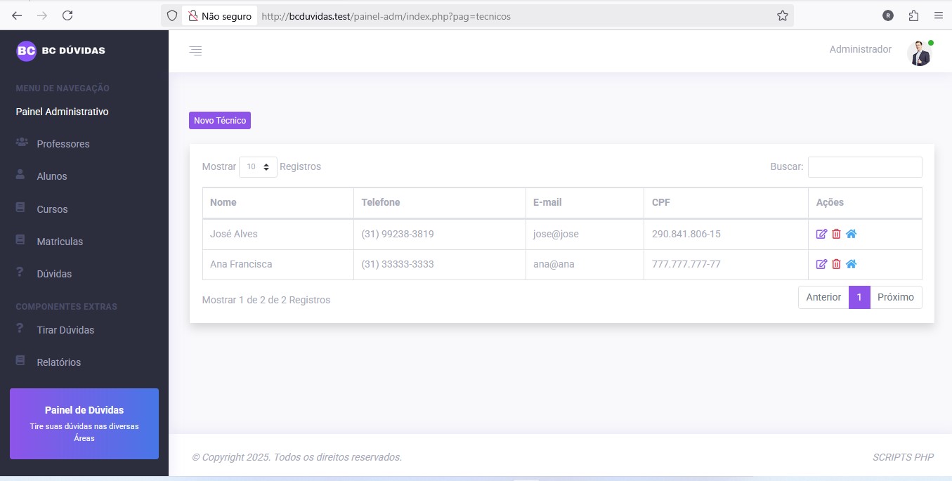 O gestor tem a responsabilidade de cadastrar dúvidas que surgem durante o andamento dos cursos. Essas dúvidas podem ser relacionadas a qualquer conteúdo curricular, questões práticas, metodológicas ou administrativas. O gestor também tem a opção de categorizar as dúvidas por área do conhecimento ou tipo (ex: teoria, exercício, projeto), facilitando a busca e a organização dentro do sistema. - Cadastro de Alunos e Professores: